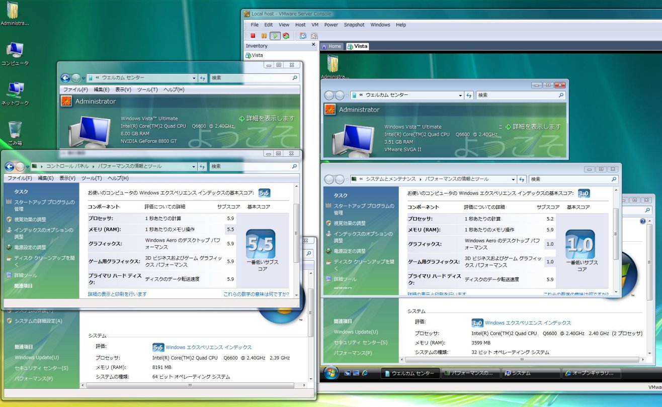 しかし64bitのWindows系OSなら4GB以上のメモリも使用できるためVMware等で多数のゲストOSを同時実行できます。