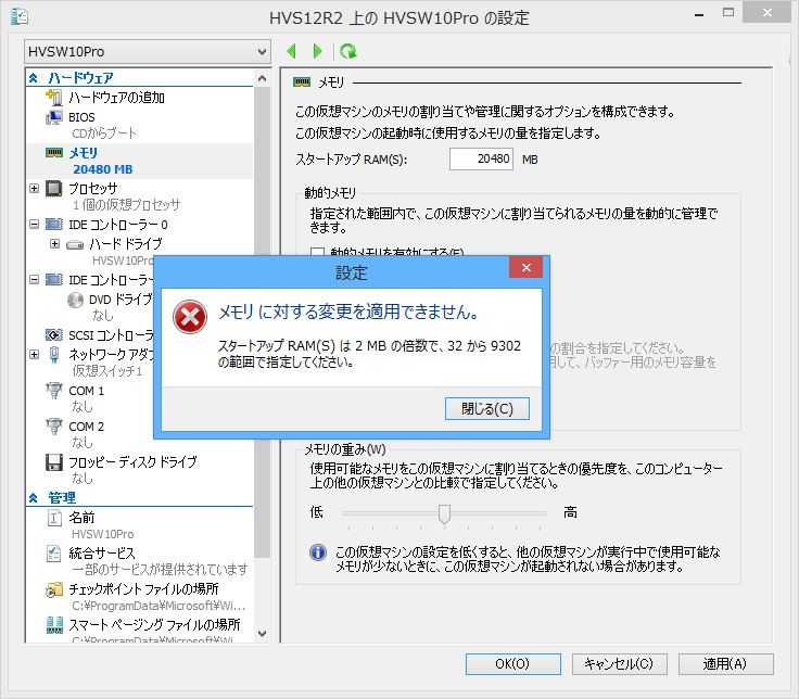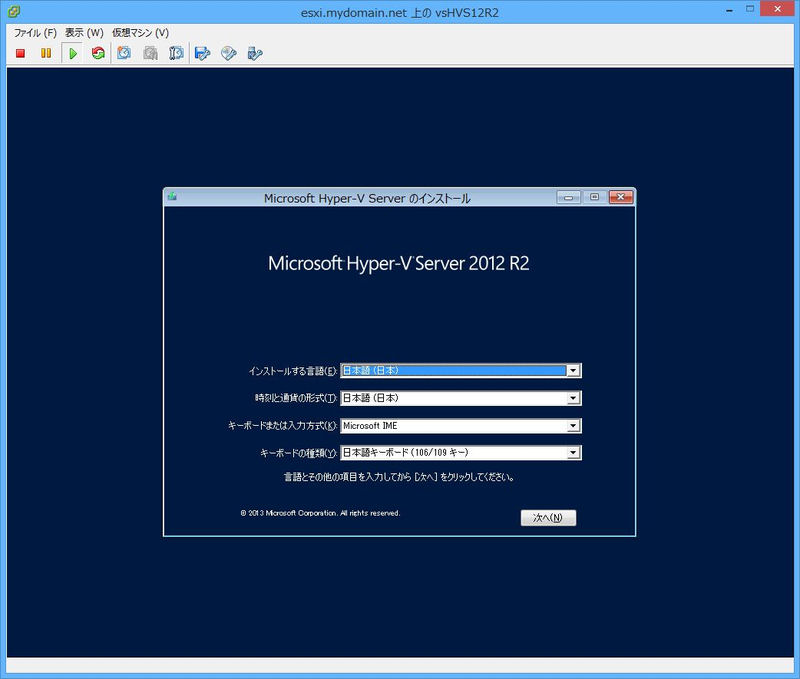 | 仮想Hyper-Vホスト (ESXi上の仮想マシン) | Hyper-V Server 2012 R2 | ||