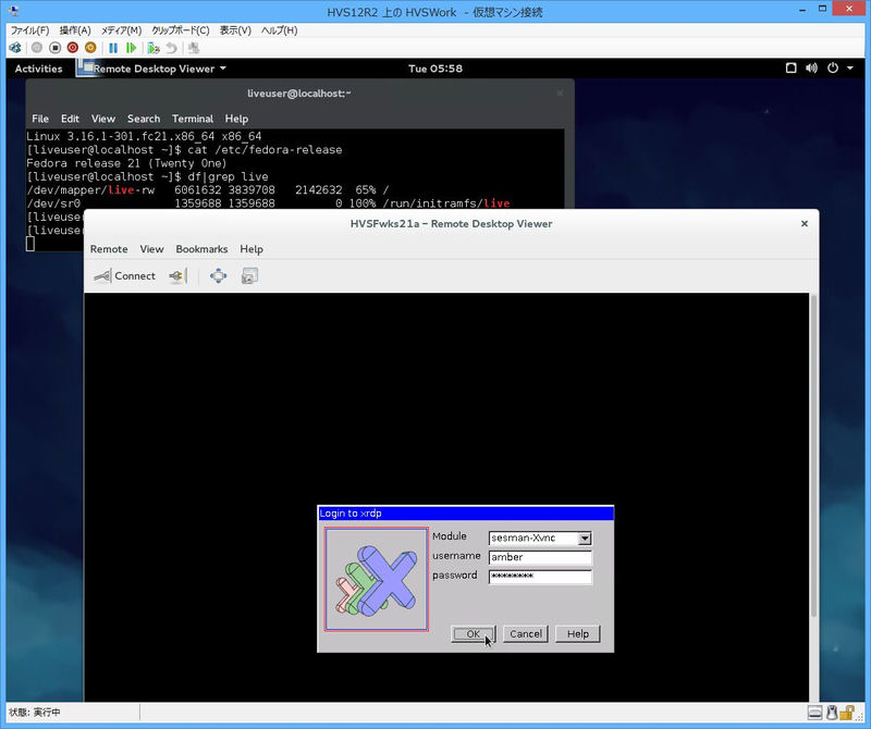 ここではHyper-V Server 2012 R2環境での64ビット版Fedora 21 Alpha Live版へのxrdpの導入・検証手順について紹介致します。