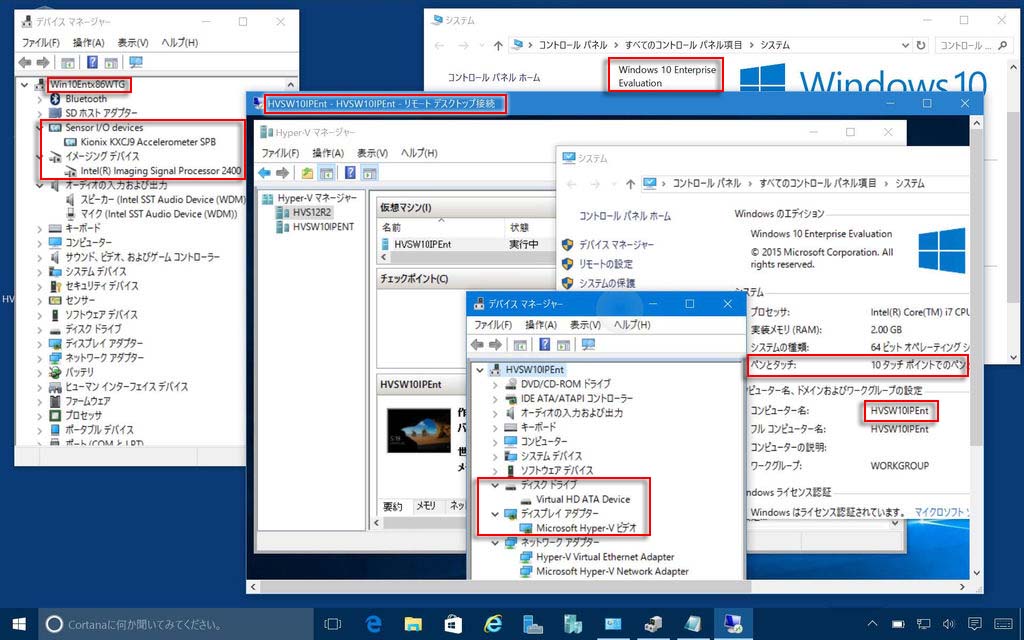 Windows 10 EnterpriseはWindows Server 2012 R2やHyper-V Server 2012 R2環境での仮想マシンのゲストOSとして動作しますがWindows 10系でRemoteFX USBデバイスリダイレクトが使用可能な唯一のエディションです。