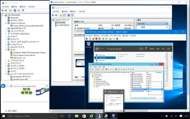 | 末端仮想マシン | OS = Windows Server 2016 TP4 (mydomain.netというドメインのメンバー) |