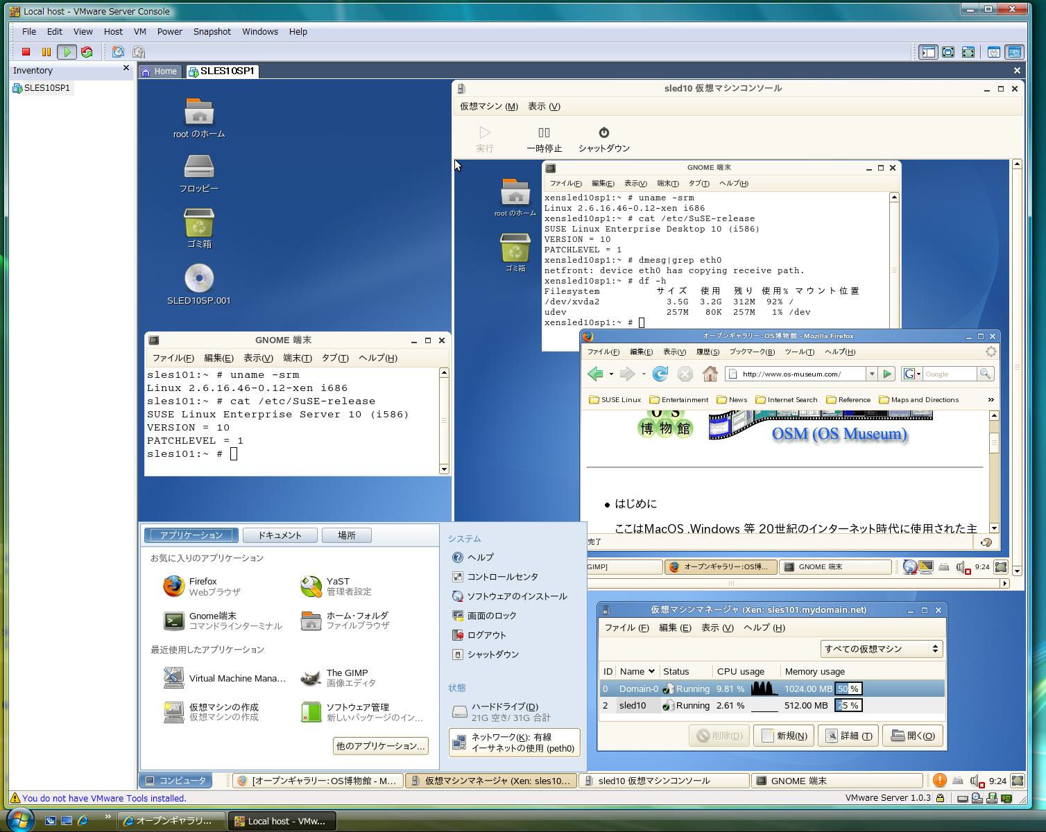 ・VMware上のSLES 10 SP1のDomainUで動作させるOS:SLED 10 SP1(SUSE Linux Enterprise Desktop 10 SP1)