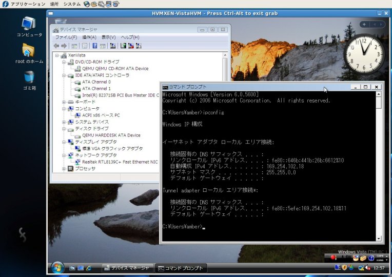 この完全仮想化技術を利用したHVMドメインではLinux以外のOS(Windows Vista等)も動作可能です。