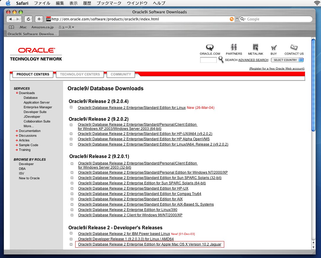 Mac OS X用の開発者向けOracle9iはOTN(Oracle Technology Network)にて公開されています。