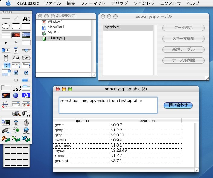 更にOracle9i/MySQL/PostgreSQL用のODBCドライバも導入しREALbasicからも利用してみました。