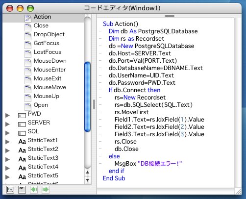 ちなみにMySQLやPostgreSQLについてもREALbasicからネーティブアクセスすることができます。