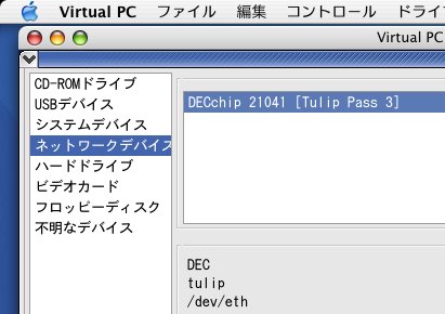 - Kudzuによるハードウェアチェック時にWinVPC用のネットワークカード(DECchip 21140)が存在しないことが検出されます。