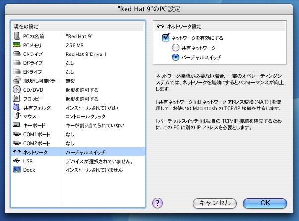 尚、Red Hat 9のインストール先はホストMacの内蔵HDD(IDE)内のディスクイメージとします。