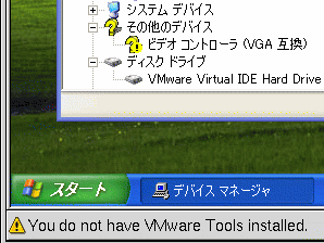 Windows XPのデバイスマネジャで仮想マシンのデバイスを確認できます。