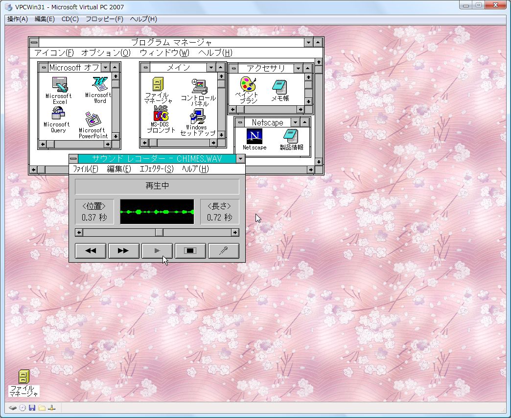 尚、VPC2007でのWindows 3.1(英語版)はクリーンインストールしたものでエンハンスドモードで稼働しています。