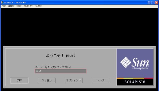 Solaris8を上記で定義したゲストPCにインストールする手順は以下の通りです。