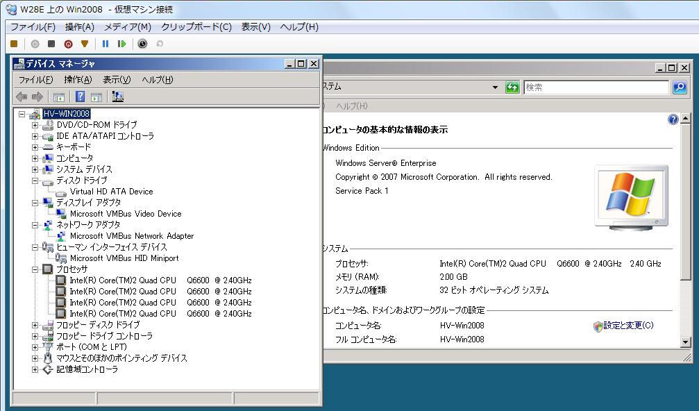 32ビット版Windows Server 2008にはHyper-V統合サービスのベータ版が付属していますが、